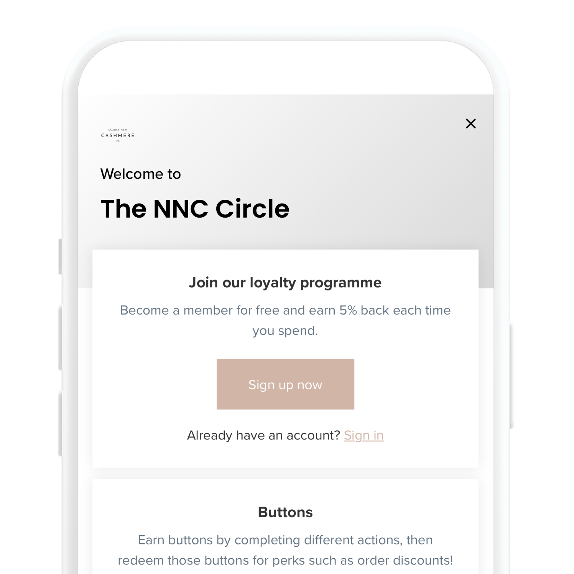 We would always recommend redeeming your buttons and then using the code straight away. Your discount code will be active for 6 months after you redeem it. If you have lost the code or would like to refund your buttons, please email info@nearlynewcashmere.co.uk.