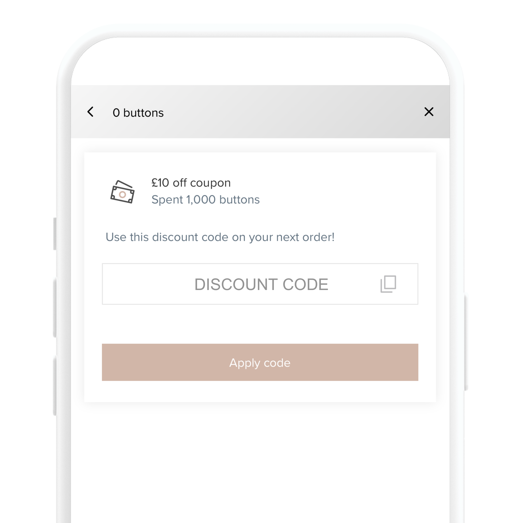 Collect your buttons and choose what you would like to redeem them for. You will receive a code which you need to copy and paste into the discount code box at checkout.