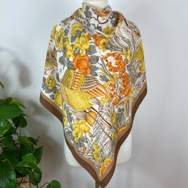 Brand New Italian Fawn Tropical Flower Silk Scarf