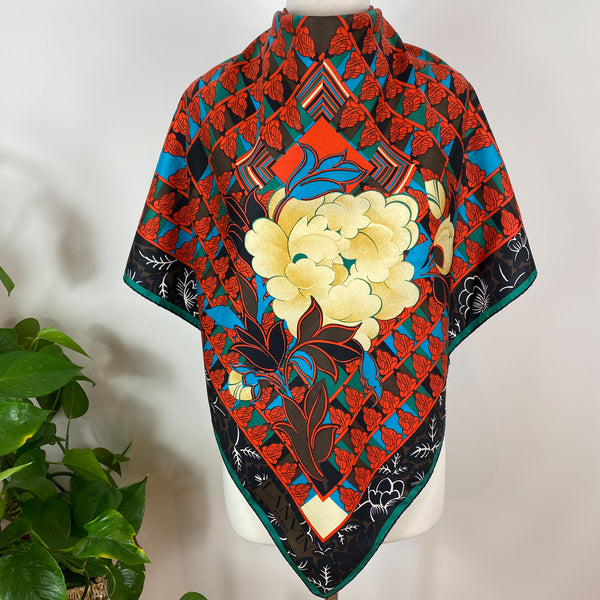 Brand New Italian Bold Floral Design Silk Scarf