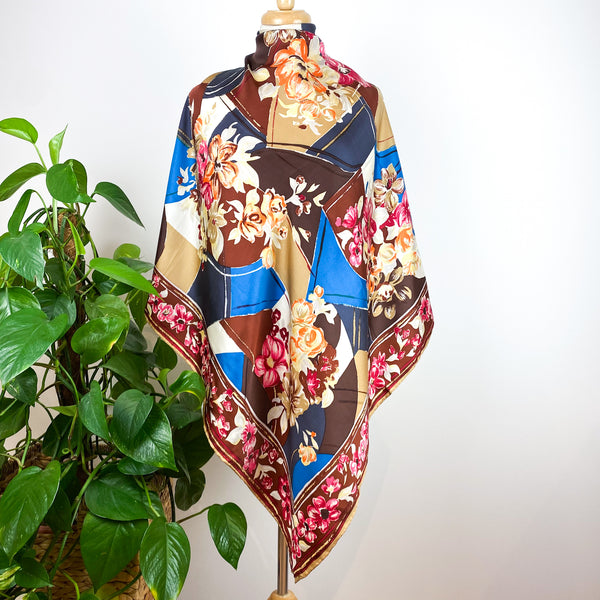 Brand New Italian Floral Colour Block Silk Scarf