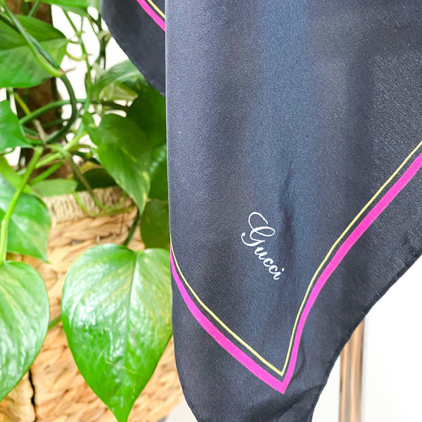 Brand New Italian Black Tropical Flower Silk Scarf