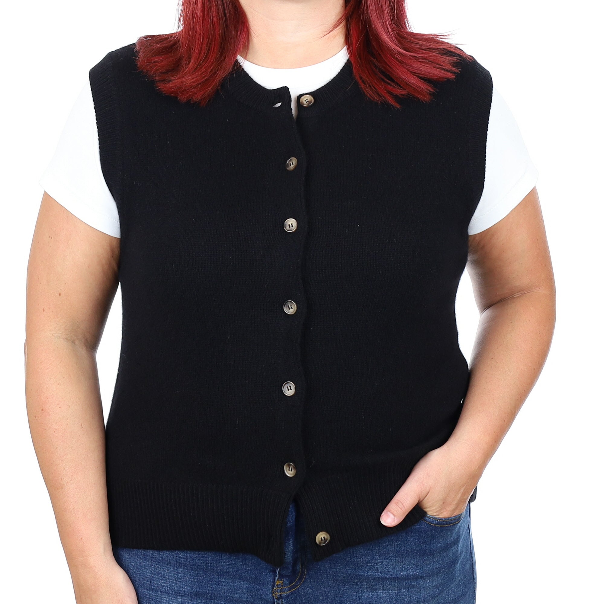 Brand New Black Luxury Cashmere Crew Neck Waistcoat Large UK 16-18