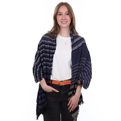 Brand New British Midnight Blue and Sand Luxury Woven Cashmere Crinkle Wrap