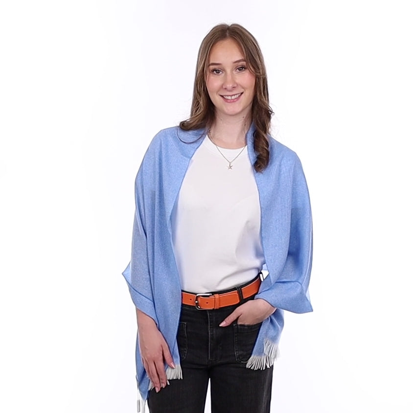 Brand New British Sky Blue and Ivory Luxury Woven Cashmere Mini Wrap
