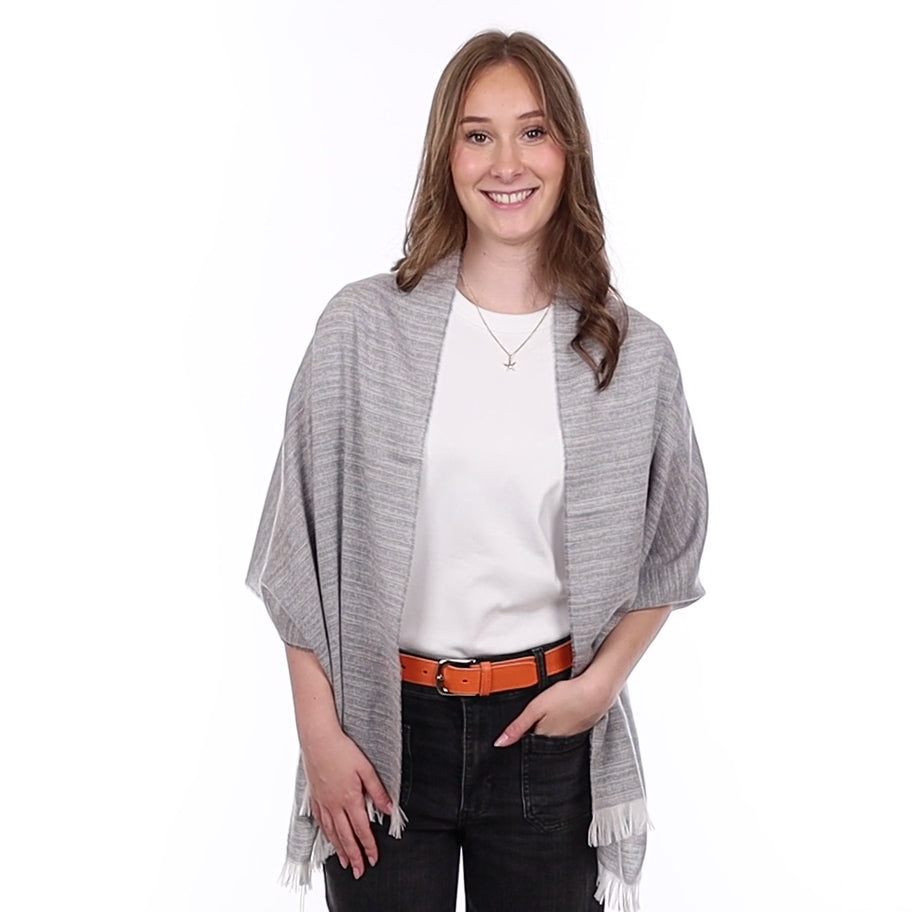 Brand New British Smoke Grey and Ivory Luxury Woven Cashmere Mini Wrap