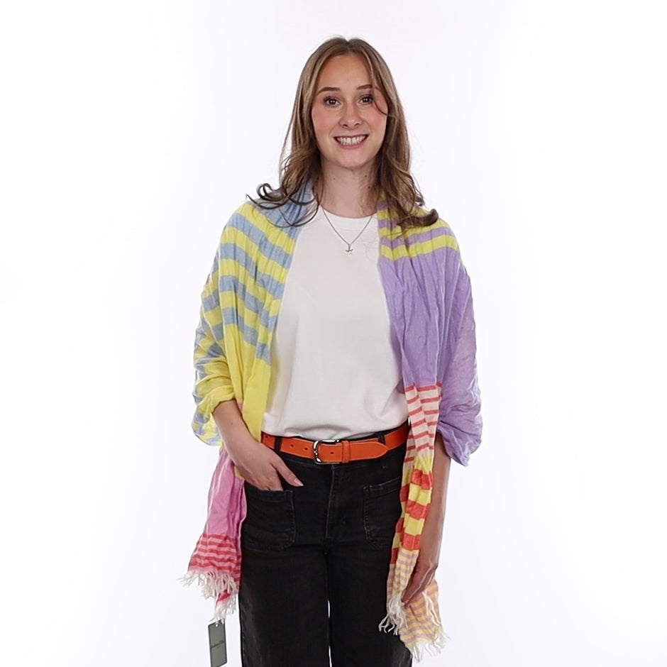 Brand New British Candy Stripe Luxury Woven Cashmere Crinkle Wrap