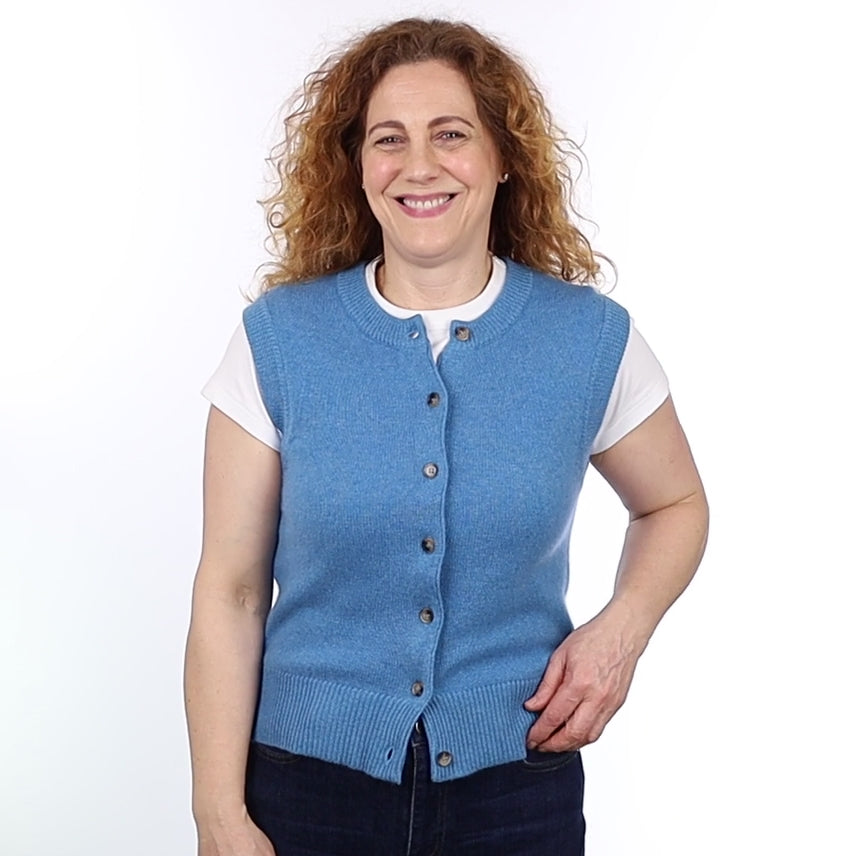 Brand New Mediterranean Blue Luxury Cashmere Crew Neck Waistcoat Medium UK 12-14