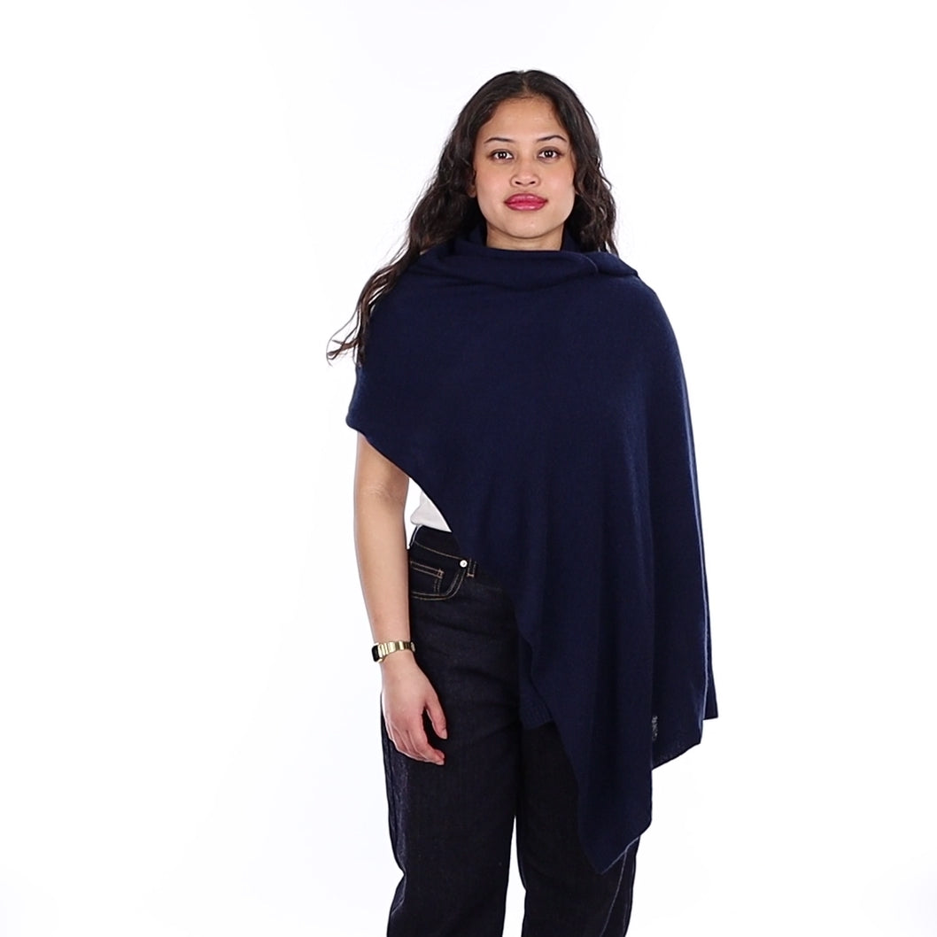 100% cashmere wrap. Made from 60% recycled cashmere and 40% sustainably farmed virgin cashmere. Measuring length 180 cm and width 60 cm.
