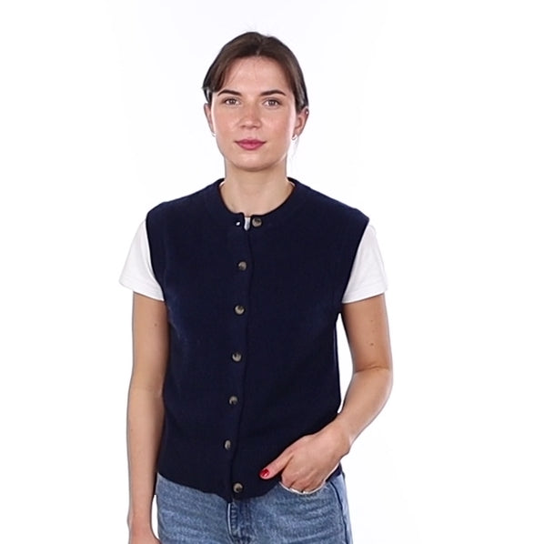 Brand New Navy Luxury Cashmere Crew Neck Waistcoat Small UK 8-10