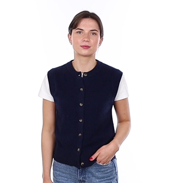 Brand New Navy Luxury Cashmere Crew Neck Waistcoat Medium UK 12-14