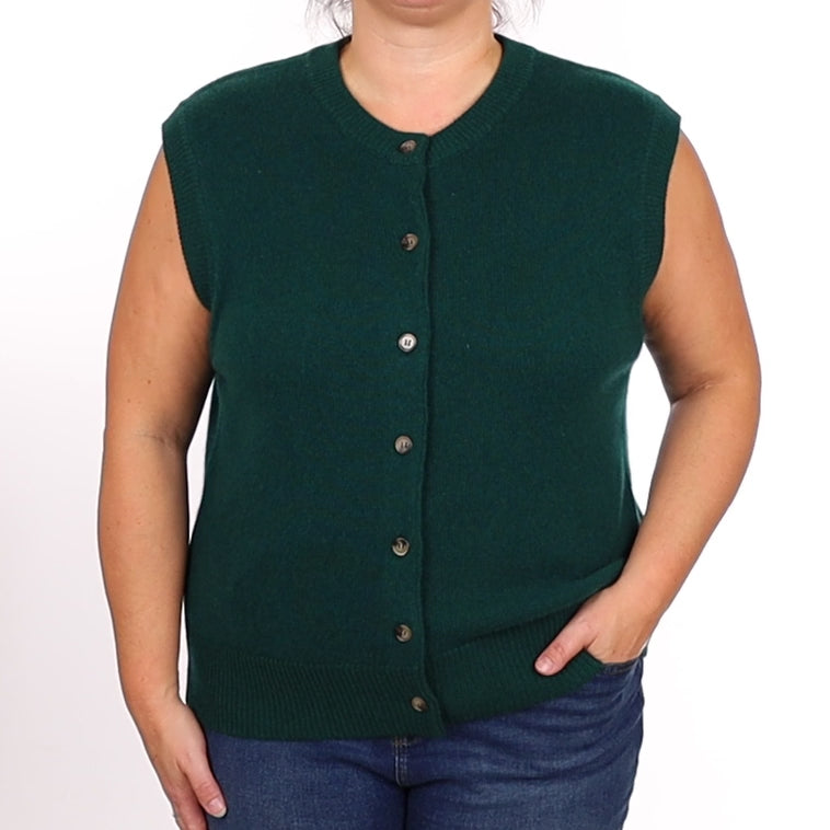 Brand New Forest Green Luxury Cashmere Crew Neck Waistcoat Extra Large UK 20-22