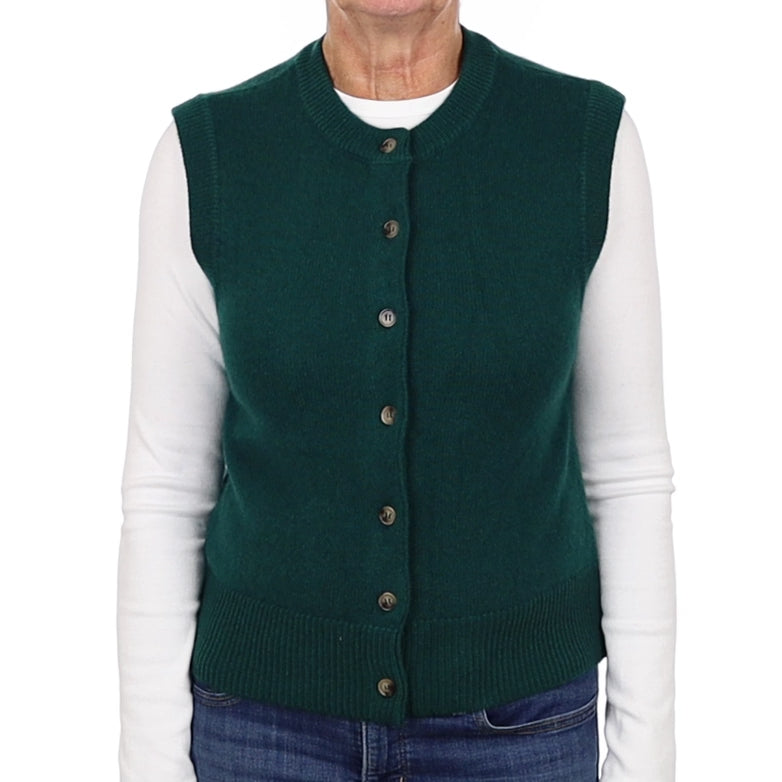 Brand New Forest Green Luxury Cashmere Crew Neck Waistcoat Medium UK 12-14