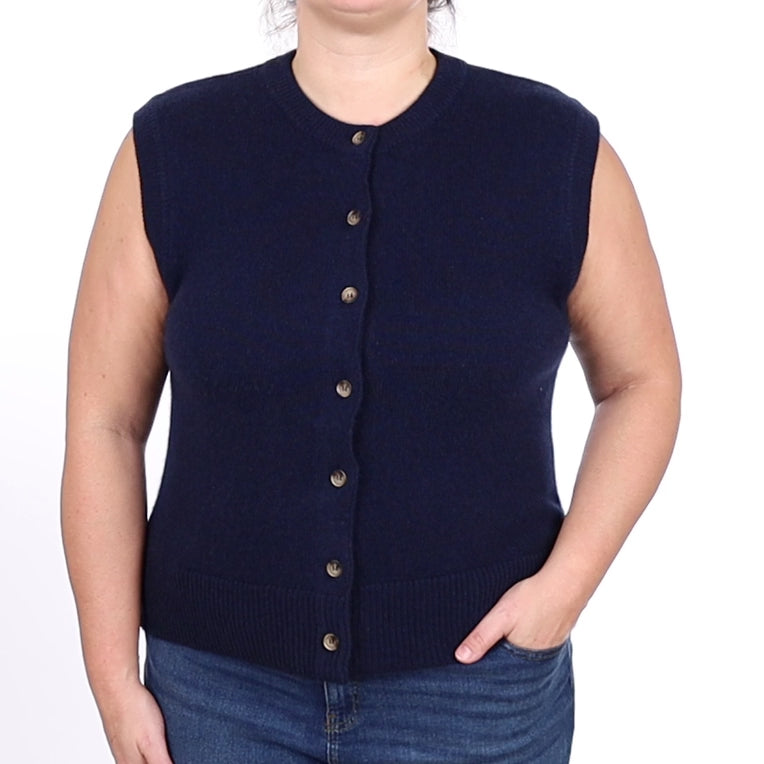 Brand New Navy Luxury Cashmere Crew Neck Waistcoat Large UK 16-18