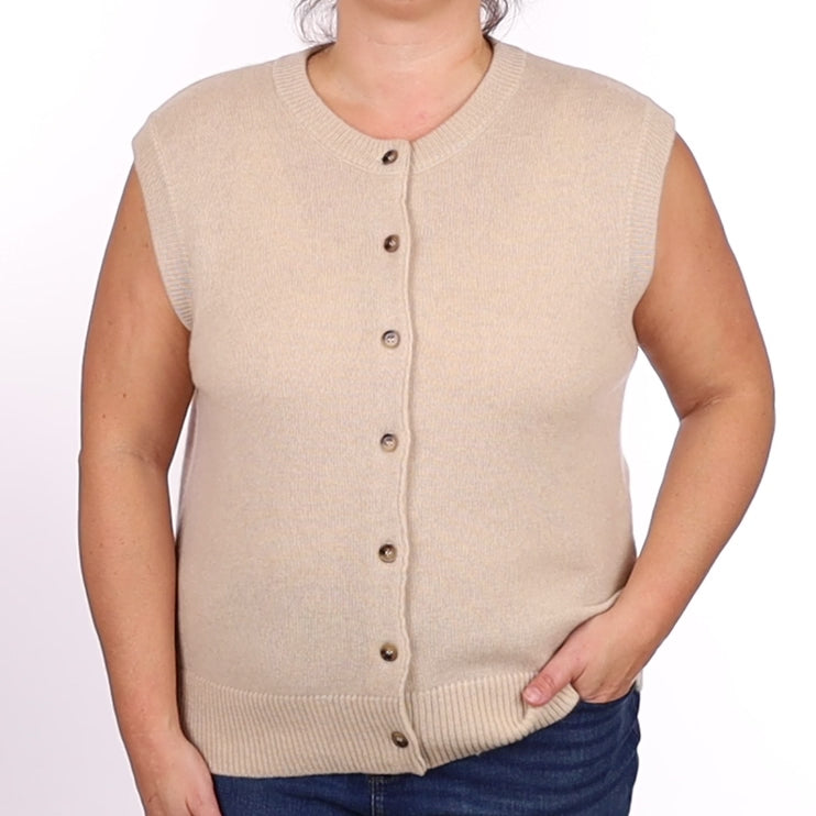 Brand New Oatmeal Luxury Cashmere Crew Neck Waistcoat Extra Large UK 20-22